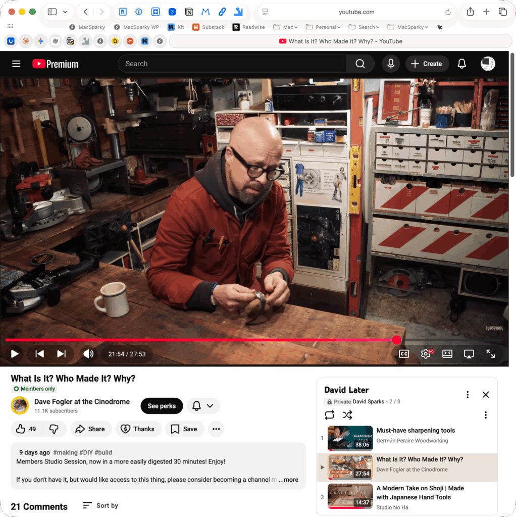 3. Use the algorithm, but on your terms. I actually like YouTube’s recommendations. They surface videos I wouldn’t find otherwise. The trick is treating them like suggestions, not commands. See something interesting? Add it to the list. Move on.