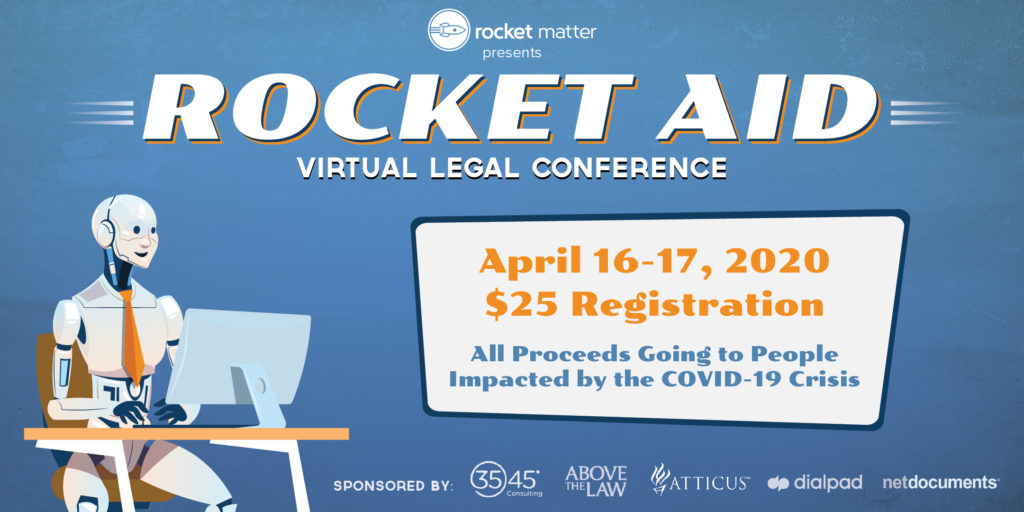 Rocket Matter is hosting Rocket Aid, an online virtual conference for lawyers on April 16-17. For you lawyers out there, it’ll be a chance to learn more about remote lawyering and tools to adapt in this changing world through media roundtables, panel discussions, minis sessions, and more. There is a $25 registration fee but ALL proceeds will go directly to United Way COVID fund, ProBono.net, and Feeding America. It should be fun and informative.