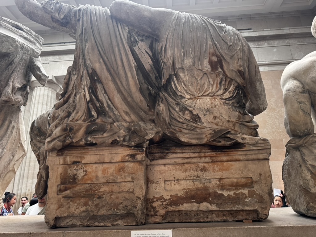 The statues are gorgeous and timeless. For example, Athena’s clothing has the subtlest wrinkles. I can’t imagine the effort it took to make them from marble. Interestingly, the British Museum displayed them in a manner that allowed you to walk around the back. I didn’t notice this at first because nobody was walking behind them. Eventually, I found myself meandering around to the back of the room, where you have an excellent view of the backs of these statues.